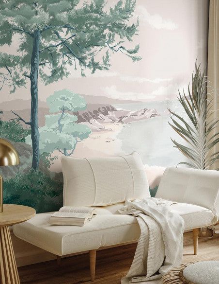 Our "Crozon" mural captures the natural beauty of the Crozon Peninsula, located in the Brittany region of northwestern France. Featuring serene coastal views with towering trees and sandy shores, this mural brings the tranquil, rugged charm of the French coastline into your home. Perfect for creating a peaceful atmosphere in living rooms, bedrooms, or dining spaces.